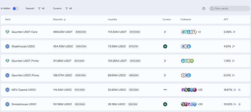 于是,它们引入了 Curator 模式。用户不再将钱存入一个统一的池子,而是选择由 Curator 管理的一个个「金库」(Vaults)。用户将钱打进金库,Curator 则全权负责如何用这些钱去投资、去生息。