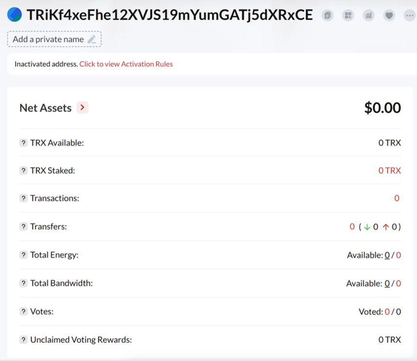 USDT充币的ERC20和TRC20链,交易记录无,余额0。
