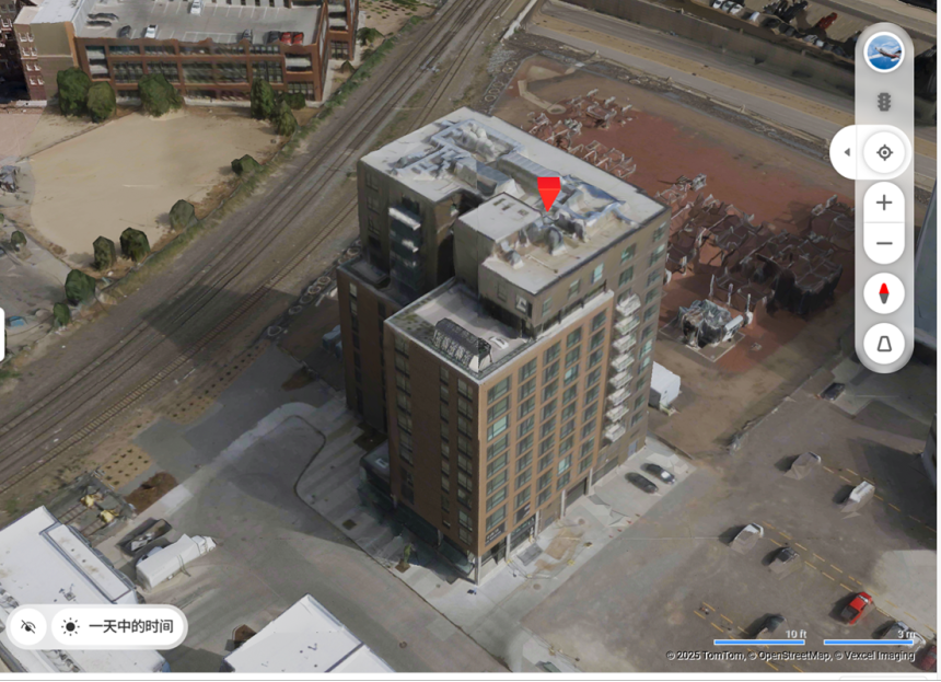 该处建筑名称为Mercer at Union Station(联合车站的默瑟大楼),是2023年建造的公寓。下图是该栋楼的3D图。