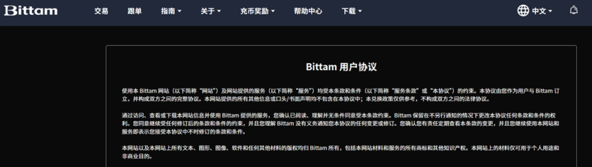 赠金规则与用户协议条款中布满陷阱,用户在Bittam注册和使用赠金就像与魔鬼签立契约,失去的是最重要的本金,账户可能随时被封。