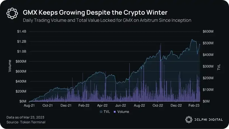 一個 L2 解鎖的例子是 GMX,這是一個去中心化的永續和現貨交易所。自在 Arbitrum 上推出以來,GMX 已經處理了超過 930 億美元的交易量,並且最近在 TVL 方面創下了歷史新高。