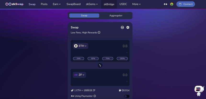 將您的錢包連接到 zkSwap:訪問 zkSwap 網站,找到“連接錢包”的選項。按照屏幕上的說明建立您的錢包與交易所之間的連接。